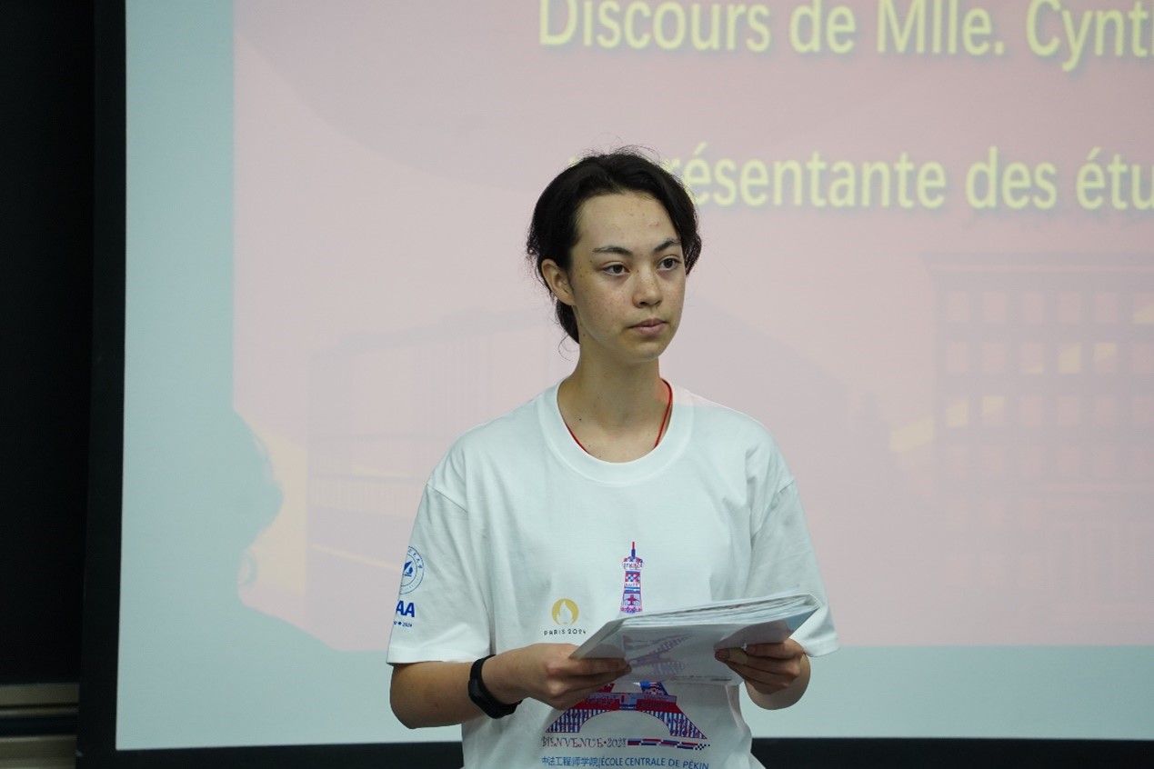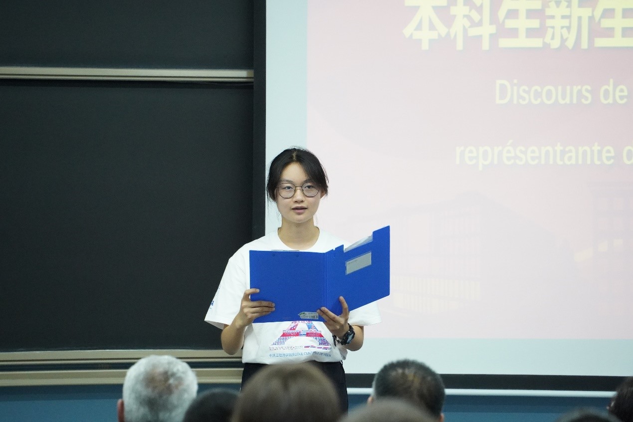 王梅老师作为教师代表发言。她用中法双语与同学们进行了交流,感谢大家选择北航世界杯官网。她表示,在目前的国际形势下选择中外合作办学是一件需要勇气的事,但同学们极大可能会遇到全球化的再次回归,拥有无数的机会与可能。她强调了理科学生学习外语的重要性,学习外语会为大家打开另一个窗口,用另一种逻辑去构筑思维。作为新生班主任代表,王梅老师也向同学们介绍了学院优秀的师资团队。老师们对于中法两国人才培养模式的优势的清晰认识、对于中法合作办学模式的深刻理解、对于学生的关怀,是学院培养出一批批国际化人才的卓越优势。