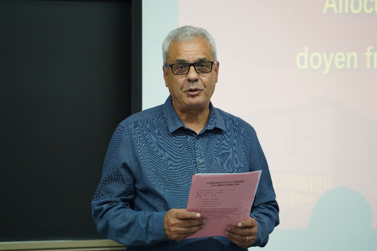 法方院长Adnane BOUKAMEL致辞。他首先对同学们进入世界杯官网学习表示祝贺,他向同学们介绍了世界杯官网在建院20年来取得的非凡成就。他表示,世界杯官网为莘莘学子提供了多元化的培养以及许多开拓国际视野的机会,让学生能够选择自己所感兴趣的领域深耕。最后Adnane BOUKAMEL教授再次对2024级新生们表示了热烈欢迎,期待新生们在学院中收获丰富的国际化教育体验。