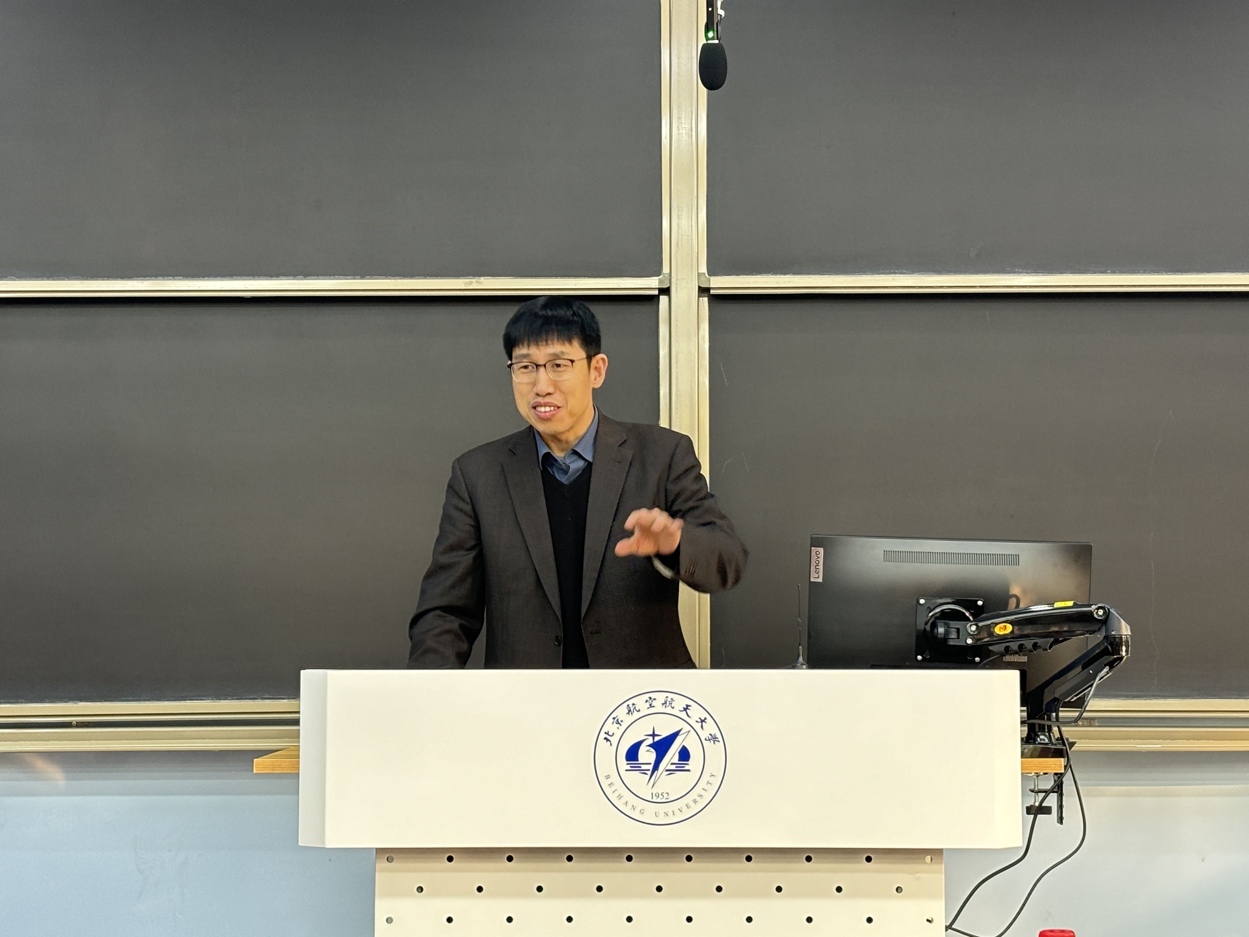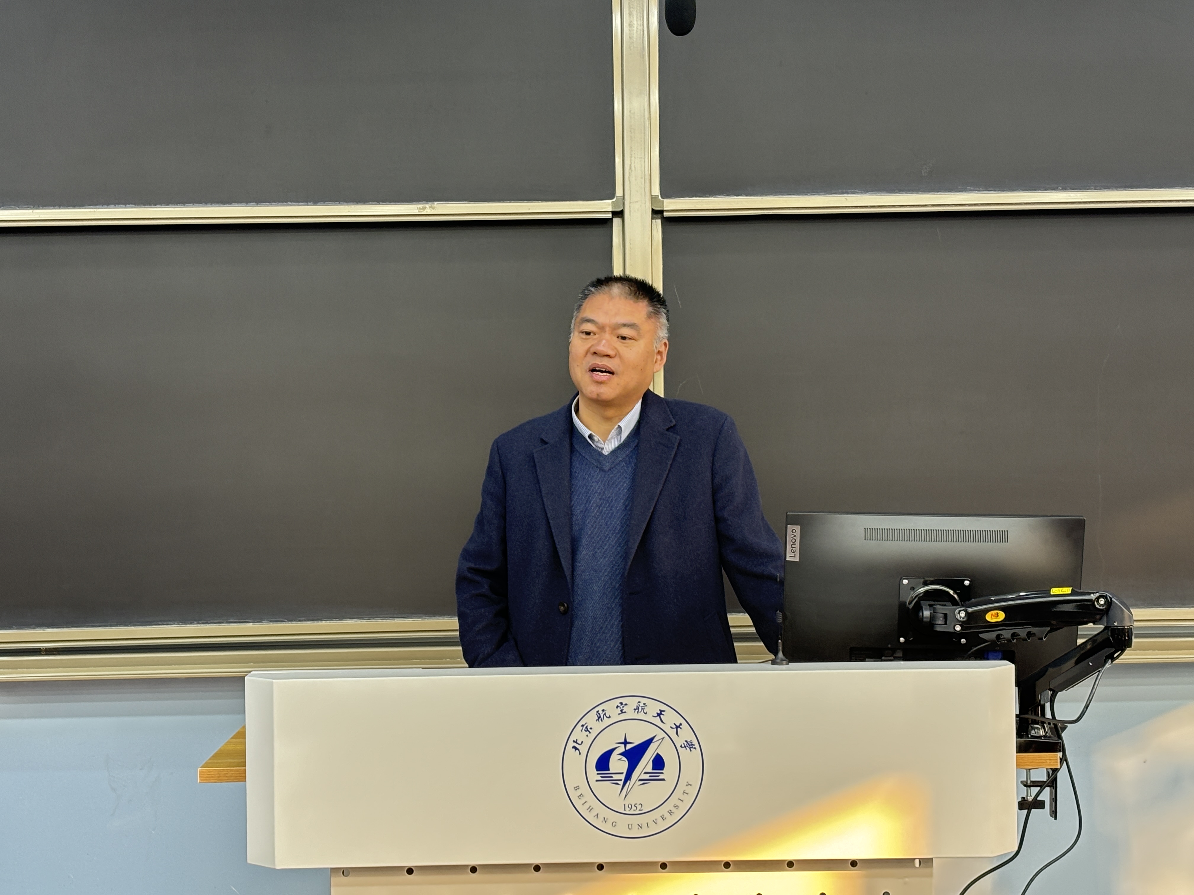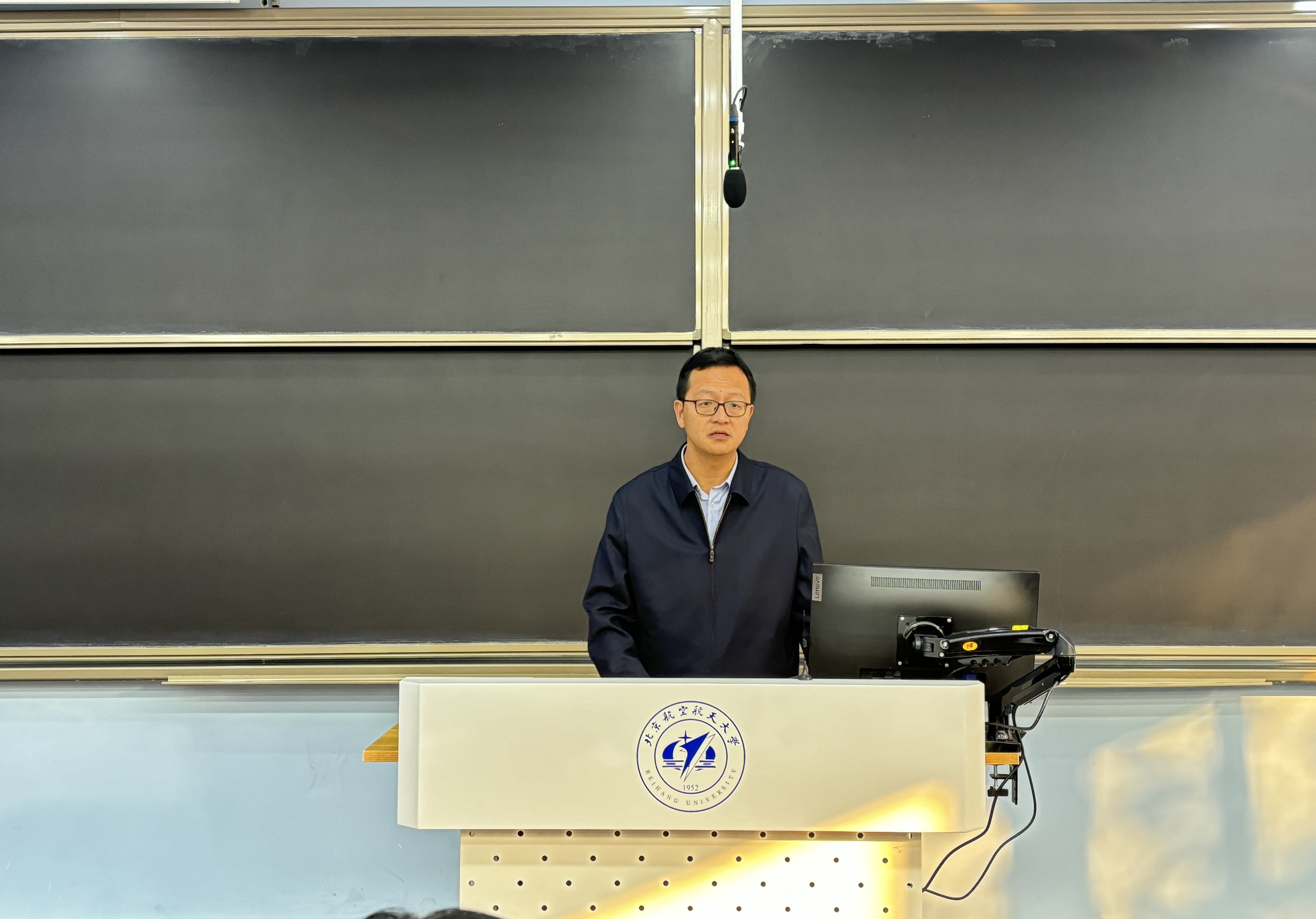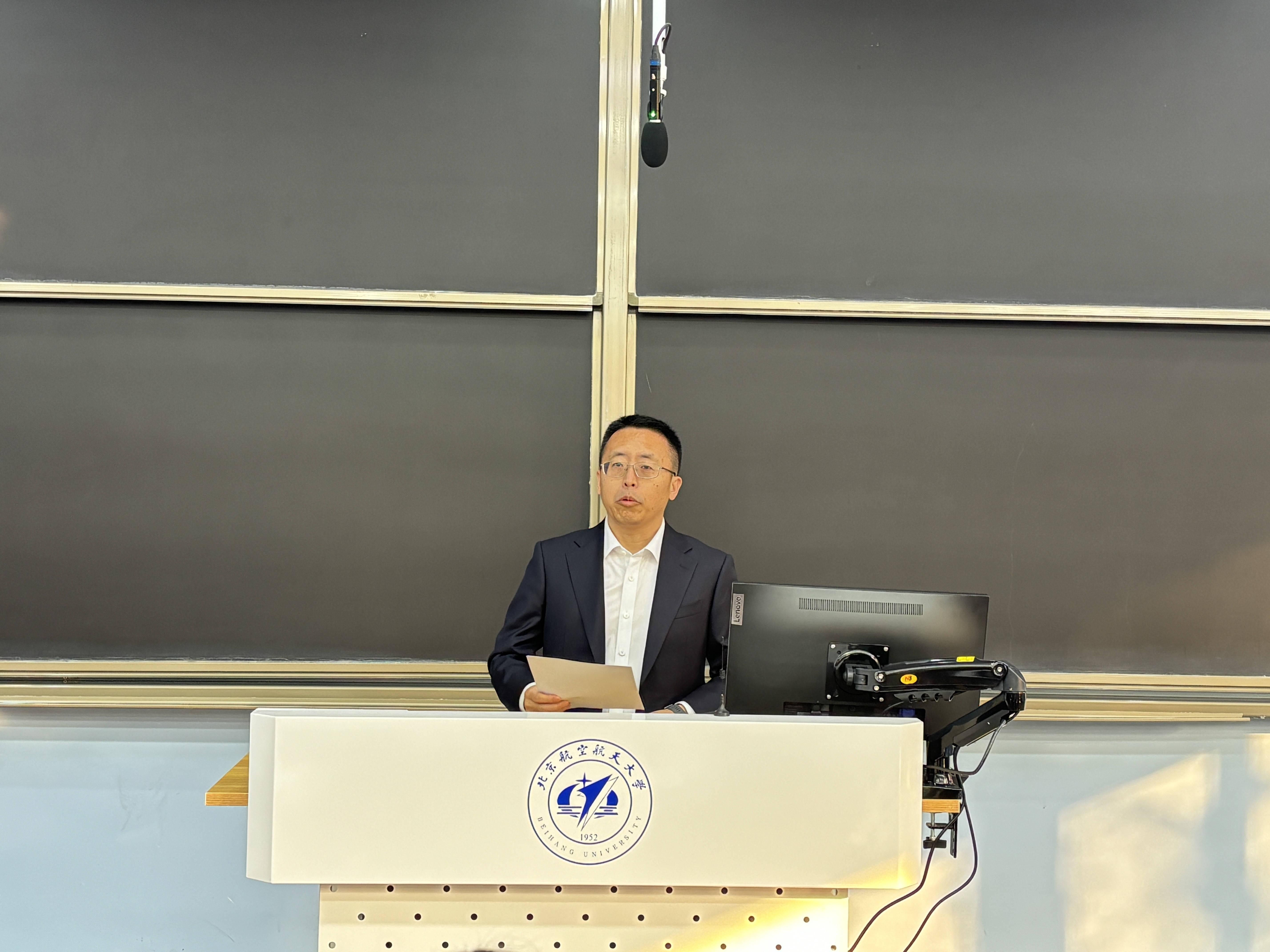 学院党委书记张江作表态发言。首先、坚决拥护并完全服从学校党委的决定。第二、热烈欢迎耿立升院长到学院工作。耿院长是国家级领军人才,有多年海外留学、访学经历和物理学院多年的院领导管理经验,欢迎基础学科的领军者和国际合作的带头人为学院发展注入强劲动力。特别对罗院长为学院作出的贡献表示感谢。最后,将与耿院长精诚团结、分工合作。明年是学院揭牌成立20周年,相信在耿院长的带领下,可以将学院工作推上新的高度,为“全球北航”贡献中法力量。