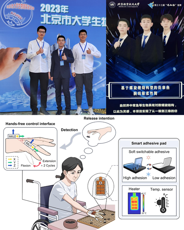 在科研方面,喻周扬发挥领域交叉优势,做与时俱进的科研。他参与了红外测温修正、软体机器人、智能粘附手套等科研项目,以第一作者或联合作者身份向国际期刊投稿两篇论文。随着AI浪潮的到来,他毅然转换研究方向,投身强化学习及自动驾驶研究,与国家、时代同频共振。