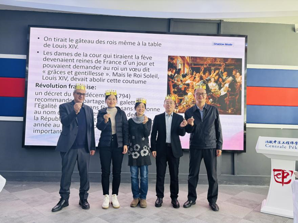 冷餐会接近尾声,法方副院长玛丽姆向大家介绍国王饼的起源和传统。吃到“蚕豆”的人是2025年的幸运儿,得到了大家的祝福。