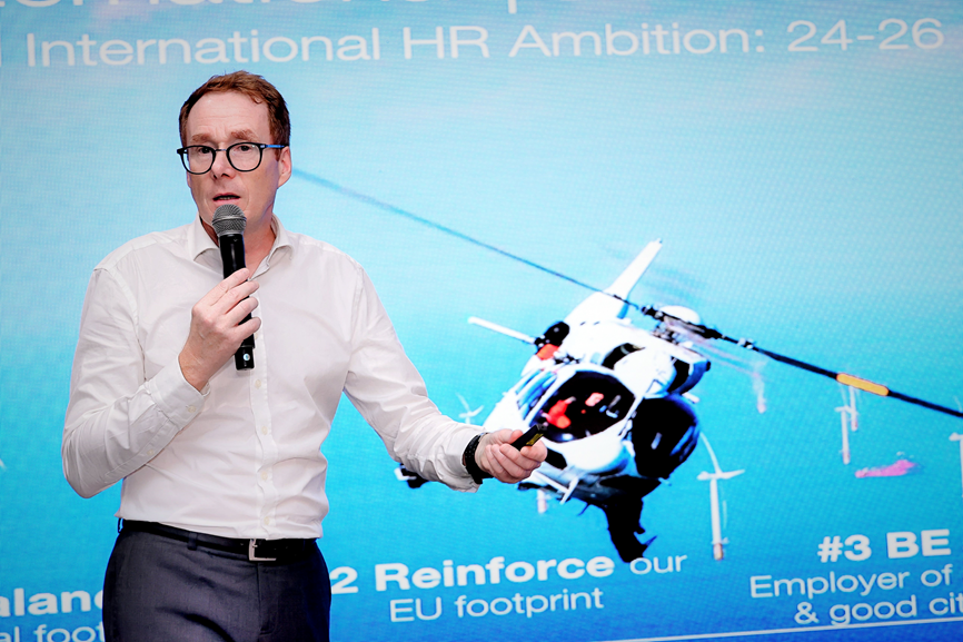 空客中国负责人为师生详细介绍了空客三大核心业务领域:商用飞机、防务与航天以及直升机。在商用飞机领域,负责人重点讲解了A320系列、A350系列等经典机型的优势,特别是A350XWB凭借其碳纤维复合材料与出色燃油效率成为行业翘楚。在直升机领域,H135机型以其独特的Fenestron尾桨设计与灵活的操控性能备受关注。