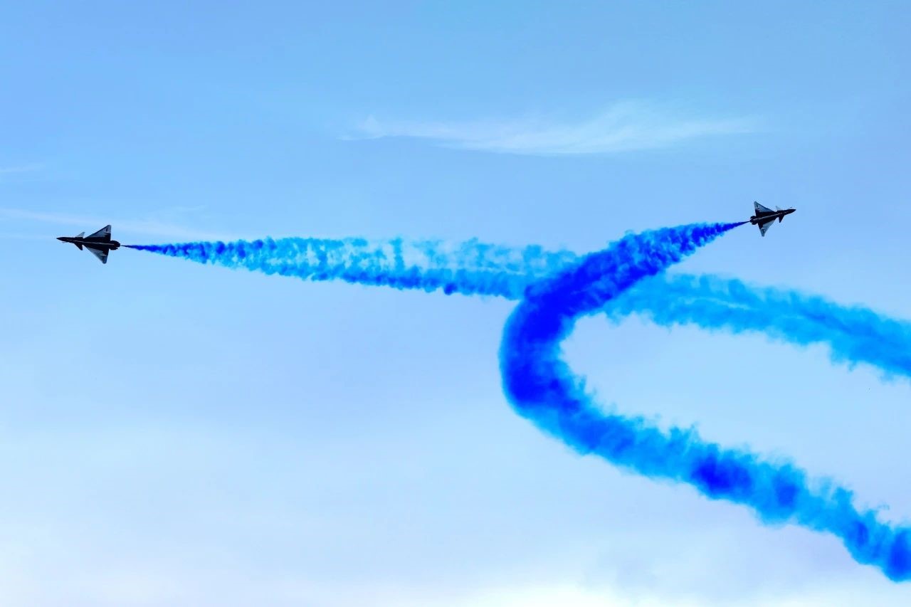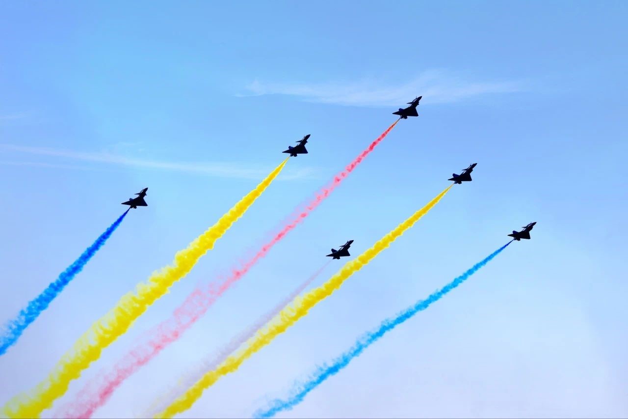 接着,师生们一同观看了外场飞行表演。在蓝天之上,中国空军 “八一” 飞行表演队以歼-10战机的双机绕轴滚和六机编队斤斗动作,为现场观众献上了一场惊艳绝伦的视觉盛宴;俄罗斯苏-57的灵活机动能力让师生深刻感受到第五代战机的技术革新;而中国空军的歼-20隐形战机凭借气势恢宏的低空飞行和全新涂装,引发现场观众阵阵欢呼。