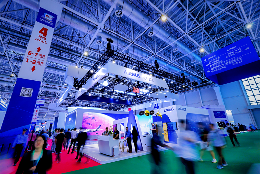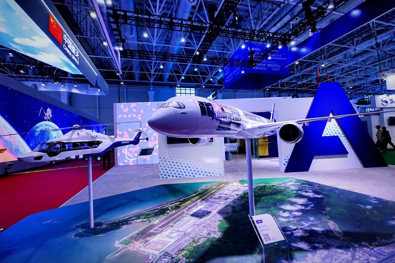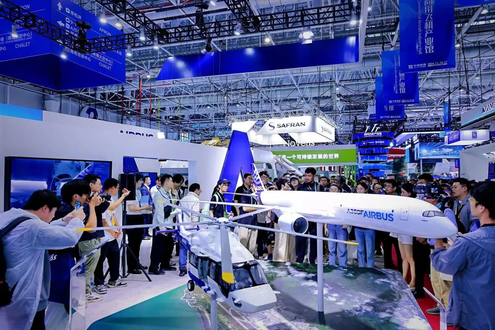 在珠海航展上,北航师生近距离参观了空客展台。展出的A350F货机与H175直升机模型充分展现了空客在航空制造领域的技术创新与设计巧思,吸引了众多参观者驻足欣赏。