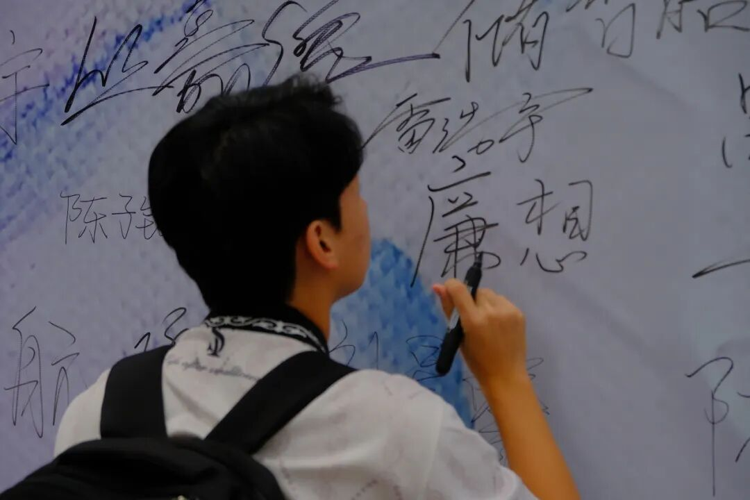 随后,志愿者贴心为每位新生和家长在签名墙前合影留念,用镜头定格初见时的期待与喜悦,这一刻温暖与仪式感交织,属于他们的大学故事正悄然开始。