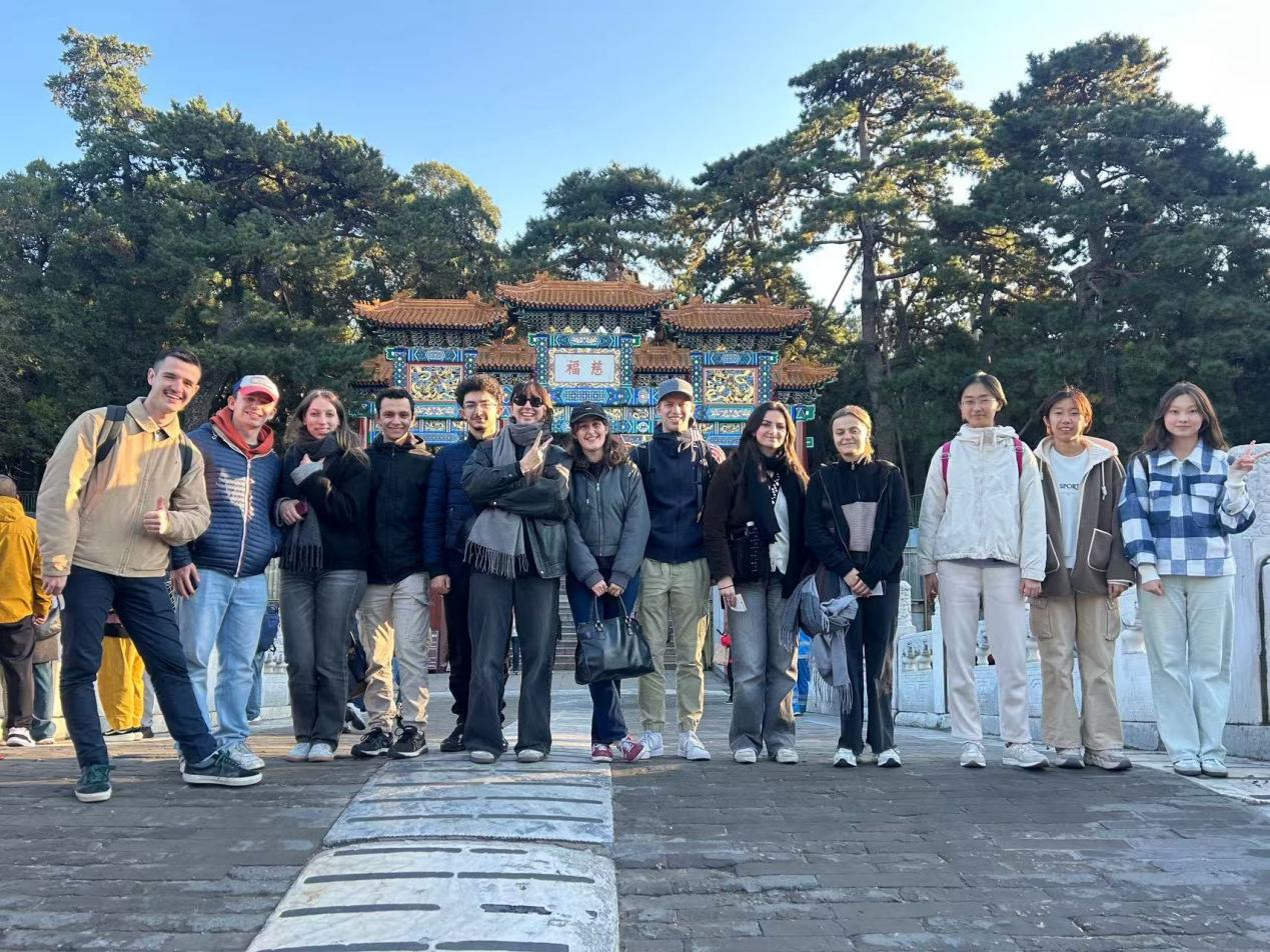 随后的文化之旅中,师生们的足迹遍布八达岭长城、胡同街区、故宫、景山、虹桥市场与天坛。在八达岭长城,他们感受中国古代建筑的雄伟与历史厚重;在胡同与故宫,通过实地探访触摸北京的历史文脉;在虹桥市场与天坛,体验传统市井生活与文化地标魅力,全方位沉浸式感受中国文化。
