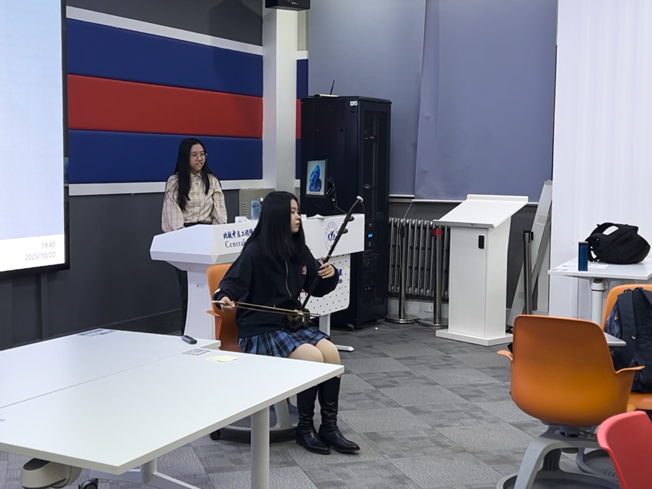 20日晚,在学校学生艺术团和书法社团的支持下,法国师生体验了中国民族乐器和书法文化。