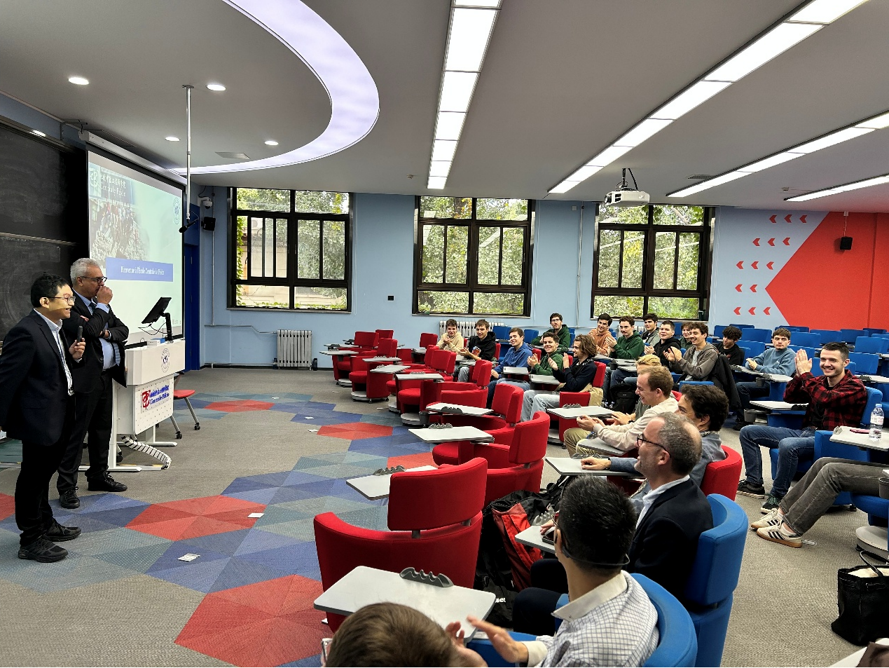 10 月 17 日,交流活动正式拉开帷幕。上午 8 点 30 分,师生们在大运村 10 号楼下集合,由北航学生志愿者带领前往就餐,开启充实的一天。开营仪式在二号楼 309 教室举行。仪式上,世界杯官网法方院长布卡麦Adnane Boukamel详细介绍了北航的办学特色、学科优势及世界杯官网的建院理念与发展成果,同时向来访师生发出来华留学的诚挚邀请,为本次交流奠定友好基调。