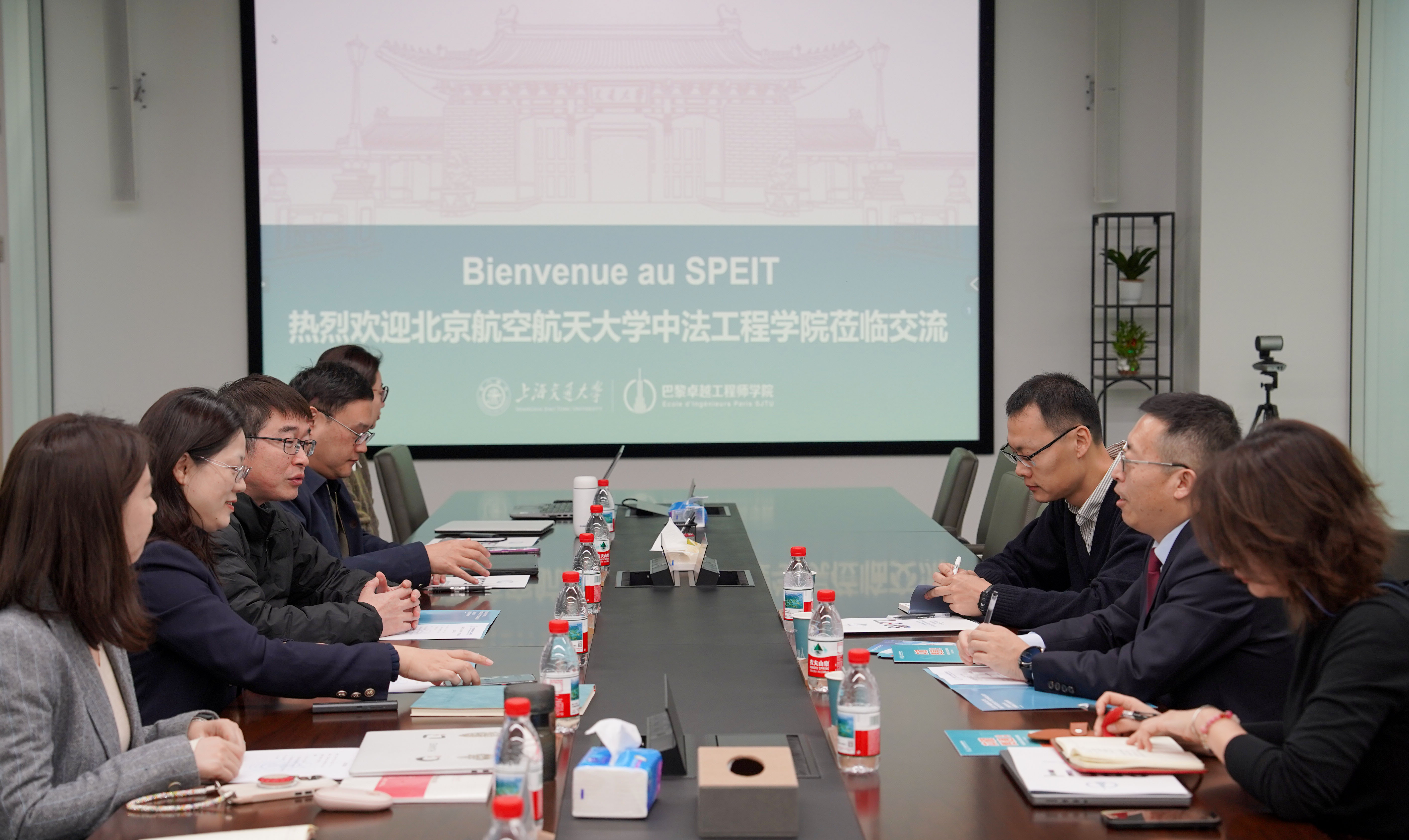 上午,调研团队抵达上海交通大学巴黎卓越工程师学院,与学院党委书记熊振华、院长陈彩莲及相关职能部门负责人进行座谈。双方围绕中外合作办学中的核心议题展开深度对话。在师资队伍建设方面,巴黎卓越工程师学院分享了其整合中法优质教育资源、构建国际化师资团队的系统经验;北航世界杯官网则介绍了在促进中法教师深度融合、提升教师教学水平方面的创新举措。学科建设方面,双方就融合国际先进工程教育理念与中国特色、优化课程体系、强化实践教学、提升学生创新与实践能力等进行了充分探讨。两院还交流了国内外招生策略与留学生管理服务的最新实践,共同探索卓越工程师人才培养新模式。