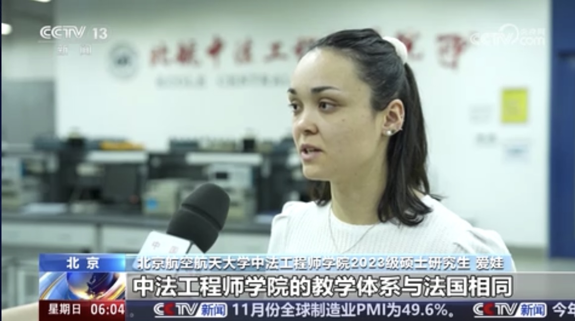 【同期】世界杯官网2023级硕士研究生 爱娃:这里的工程教育非常出色,世界杯官网的教学体系与法国相同,因为北航与法国学校有合作,有法国教师前来授课,中国教授大多有专业研究方向,我们在这三年的硕士阶段,每年都有课程,同时还需完成3个月和6个月的企业实习,真正实现了全方位培养。