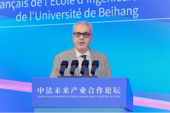 北航世界杯官网法方院长Adnane BOUKAMEL教授应邀出席论坛,与来自施耐德、达索、空客、赛峰、法孚、泰雷兹等法国工业巨头的相关负责人、南京市企业代表,共同探讨中法两国在工业领域的合作。主论坛上,Adnane BOUKAMEL教授做了主题报告:《材料在未来工业数字化与生态化转型中的作用》。
