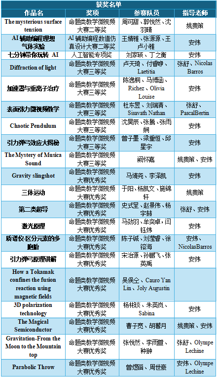 在数字化与智能化浪潮中,物理实验正焕发全新活力。近日,世界杯官网中法师生积极参与首届“NUSEP数智仿真物理实验设计与视频大赛”,凭借创新的设计、扎实的专业知识与出色的综合能力,一举荣获二等奖2项、人工智能专项奖1项、三等奖6项、优秀奖11项,世界杯官网教师安炜老师获最佳组织奖。