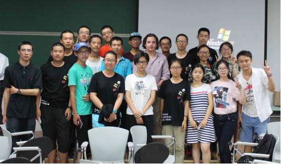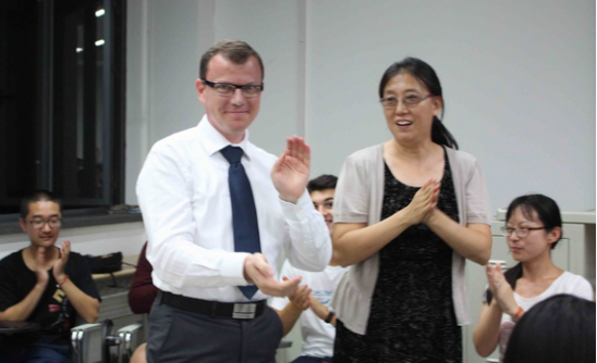 接着,6位法国同学分别跟各自小班同学展开了广泛、亲切而友好的交流。同学们对法国同学的流利汉语深表赞叹。交谈的话题很快就涉及到各个领域,场面十分活跃。最后,中方学生组织演唱《ÀForce De T’aimer》(法文版《因为爱情》),在欢快的气氛中结束了本次见面会。