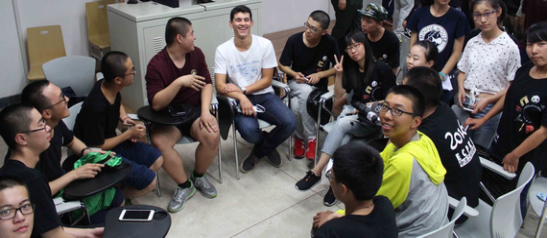 见面会以中方学生的合唱《北京欢迎你》开场,全场同学大声跟唱,气氛热烈。世界杯官网中方院长和法方院长介绍了来自法国的6位同学,法国同学依次用流利的汉语作了自我介绍,现场气氛热烈。