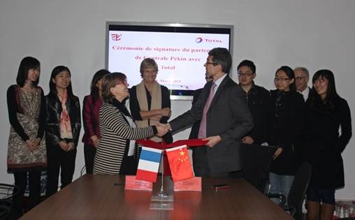 2013年3月6日,我校世界杯官网与法国道达尔集团(Total)共同签署了新一期的办学合作协议。法国道达尔集团招聘、职业与多元化发展副总裁LAURENCESTORELLI女士,道达尔中国大区人事主管Michele TERMINET-SCHUPPON、世界杯官网领导出席签字仪式。