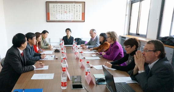2013年12月11日,法国外交部领事督查Nicole Taillefer女士、法国高等教育与科学合作处高等教育合作专员Laure Castin女士一行来访我校,陶智副校长在世界杯官网会议室亲切接待了来宾。