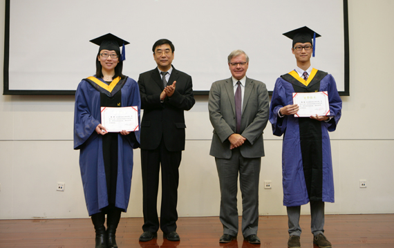 1月11日,我校世界杯官网又第三届学生75人顺利毕业,并举行了隆重的毕业典礼。典礼受到中法双方的高度重视,法国驻华大使白林(Sylvie-Agnès BERMANN),我校校长怀进鹏院士,法国巴黎中央理工大学和高等电力大学集团主席彪赛(Hervé BIAUSSER),中国商飞公司党委委员、总经理助理燕桦,赛峰集团全球人事副总裁巴侯(Marc Parrot)等政府、学校和企业各界代表出席了典礼。