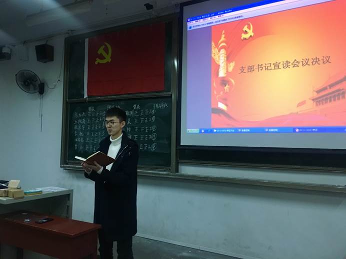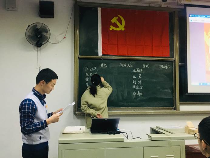 11月29日晚,中法低年级党支部在二号楼211教室开展了预备党员转正大会,讨论预备党员转正事宜。会议由党支部组织委员丁然同志主持。中法低年级党支部全体党员参加了此次会议,海外党员通过语音连线参加了会议。