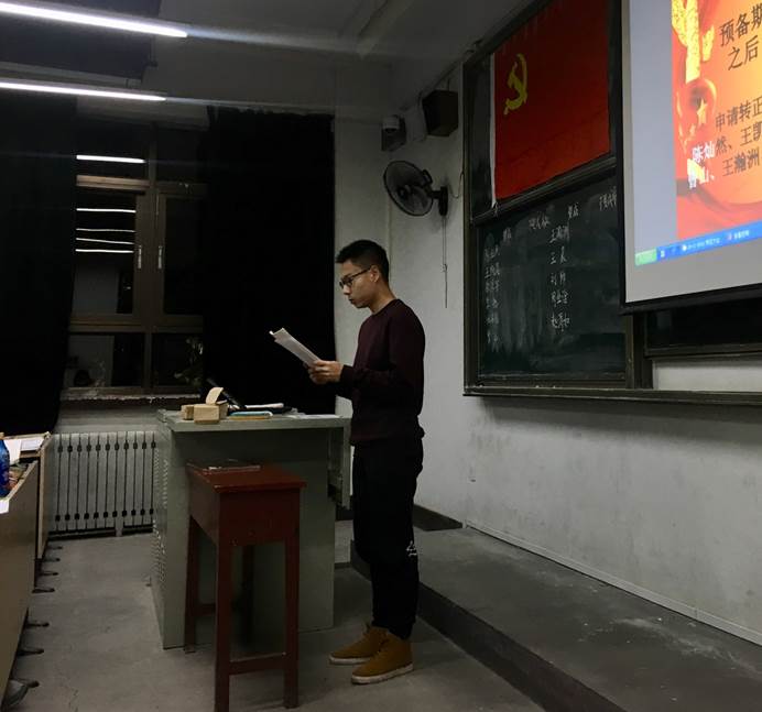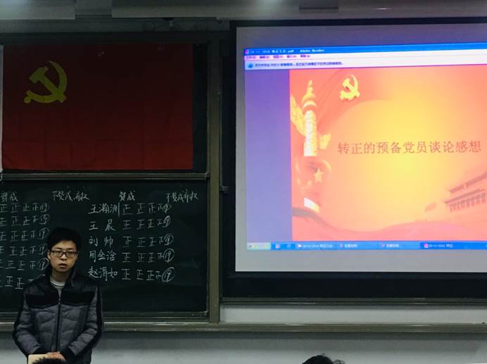 15级和16级共11名预备党员依次进行转正申请报告,他们都认真汇报了自己在预备期期间思想认识、工作、学习和生活等各方面情况,海外党员也通过视频在线进行汇报。