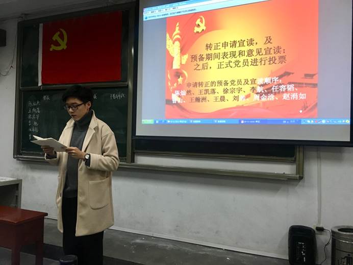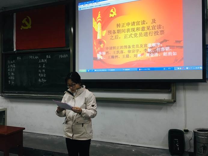 参加本次大会共有党员37人,其中正式党员19人,预备党员18人,经无记名投票表决,19名正式党员一致同意11位同志转为中共正式党员。之后将上报学院党委进行审批。