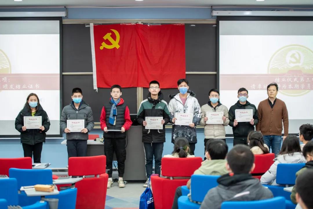 随着第五次党课的结束,本次的党建工作坊的结营仪式随即展开。学生代表钱泽、负责人马雨忻导员、李牧老师先后上台发言,李牧老师为学生代表颁发结业证书,并宣布本次活动圆满结束。