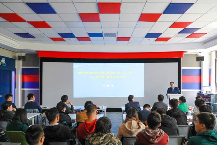 聘任仪式后,马公参以《国际组织需要什么人才——从联合国教科文组织谈起》为题,为北航师生进行了精彩讲座。马公参就国际组织和国际职员类别、政府间国际组织结构及工作方式、国际公务员职类及任职资格、中国在联合国机构任职情况及面临的挑战、国际组织人才素质与培养、中国向联合国教科文组织等国际组织推送人才的途径等向大家一一讲解。最后,他希望青年学生们能具有国际视野和中国情怀,为人类和平与发展事业做出贡献。