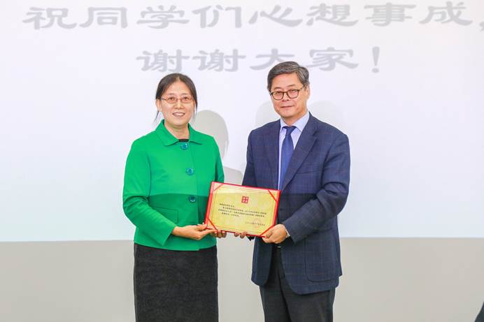 首先,洪冠新院长向师生介绍了马燕生公参丰富的外交及教育工作经历,并回顾了马公参对北航发展的长期支持。随后徐惠彬校长感谢马公参对我校国际交流及国际化建设工作的支持,并向马公参颁发了教育部区域和国别研究培育基地—北航法国研究中心的兼职教授聘任证书。
