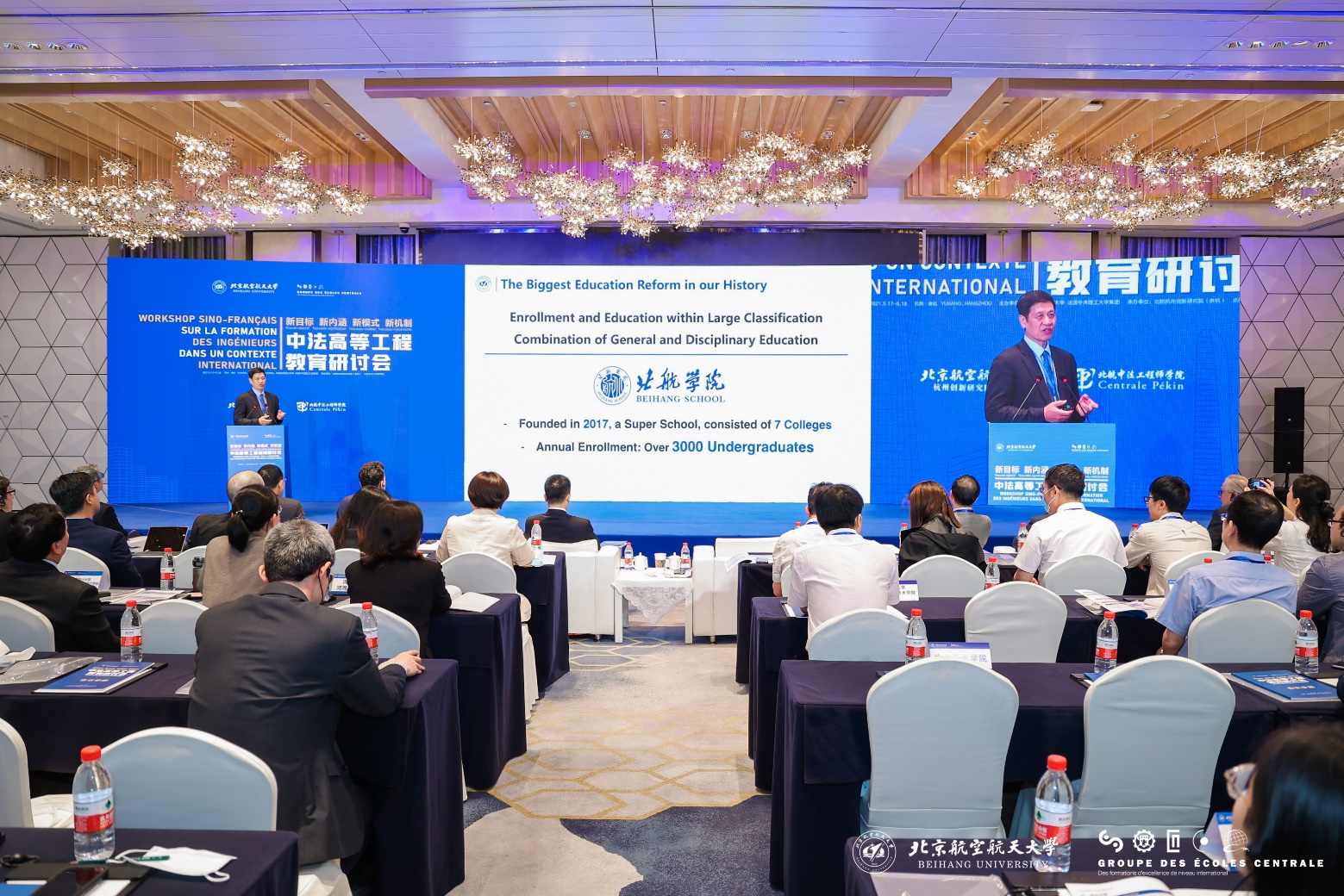 北航新闻网5月20日电(通讯员 殷传涛)2021年5月17-18日,由世界杯官网和法国中央理工大学集团共同主办,北航世界杯官网和北航中法合作办学办公室(杭州)承办的 “中法高等工程教育研讨会”在杭州余杭以线上线下相结合的方式召开。会议邀请了中法两国高等教育人士,共同探讨新时期高等工程教育的新目标、新内涵、新模式、新机制,旨在进一步深化中法双方务实合作,力争为推动中法教育合作再添新助力。会议分为5月17日的主论坛和5月18日的“中法合作办学”和“国际工程教育与科技创新”两个分论坛。