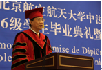 2013年1月12日上午,我校世界杯官网2006级学生毕业典礼暨学位授予仪式在新主楼第二报告厅举行。法国驻华大使白林(Sylvie-AgnèsBERMANN),我校校长怀进鹏院士,南特中央理工大学校长普瓦度(Arnaud POITOU),中国商飞公司党委委员、总经理助理、人力资源部部长燕桦,赛峰集团全球人事副总裁巴侯(Marc Parrot)等出席典礼
