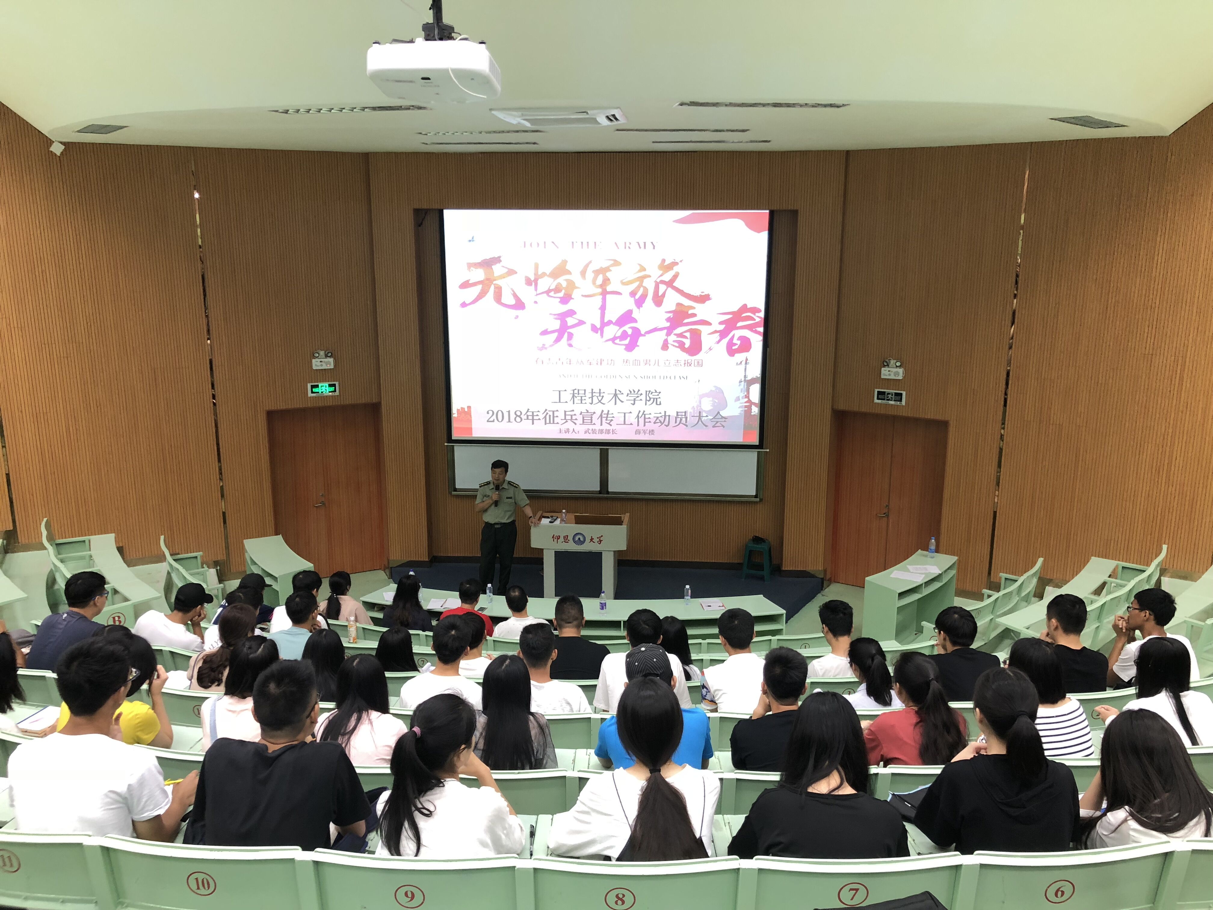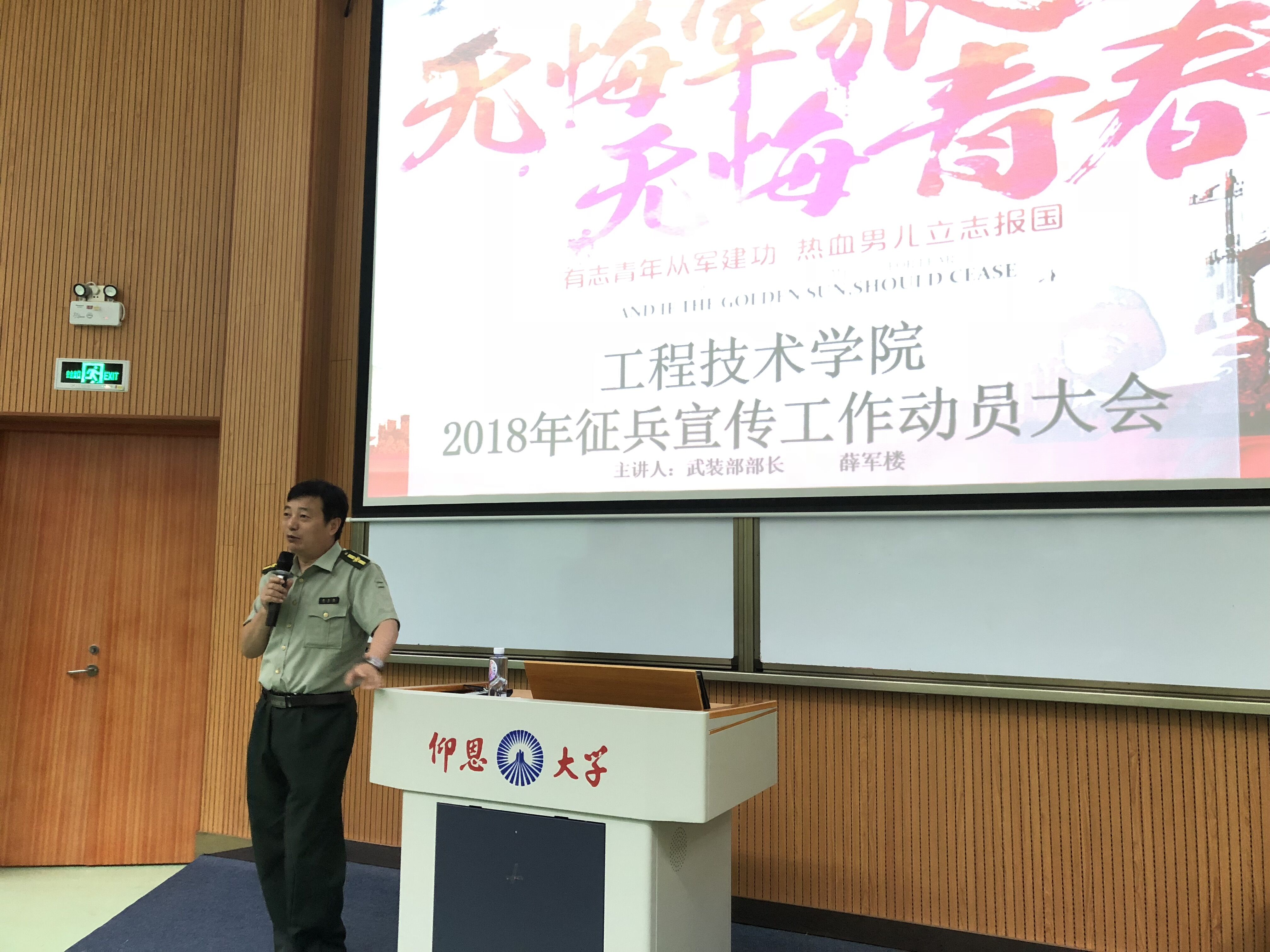 5月21日,beat365唯一官方网站在旧区和昌乐之讲堂举办大学生征兵入伍政策宣传教育主题活动。本次讲座邀请校武装部部长薛军楼主讲,学院党总支书记兼副院长曾凤生,总支副书记吕思仁,全体辅导员,学院各年级学生干部,党员,以及团委学生会骨干参加本次讲座。