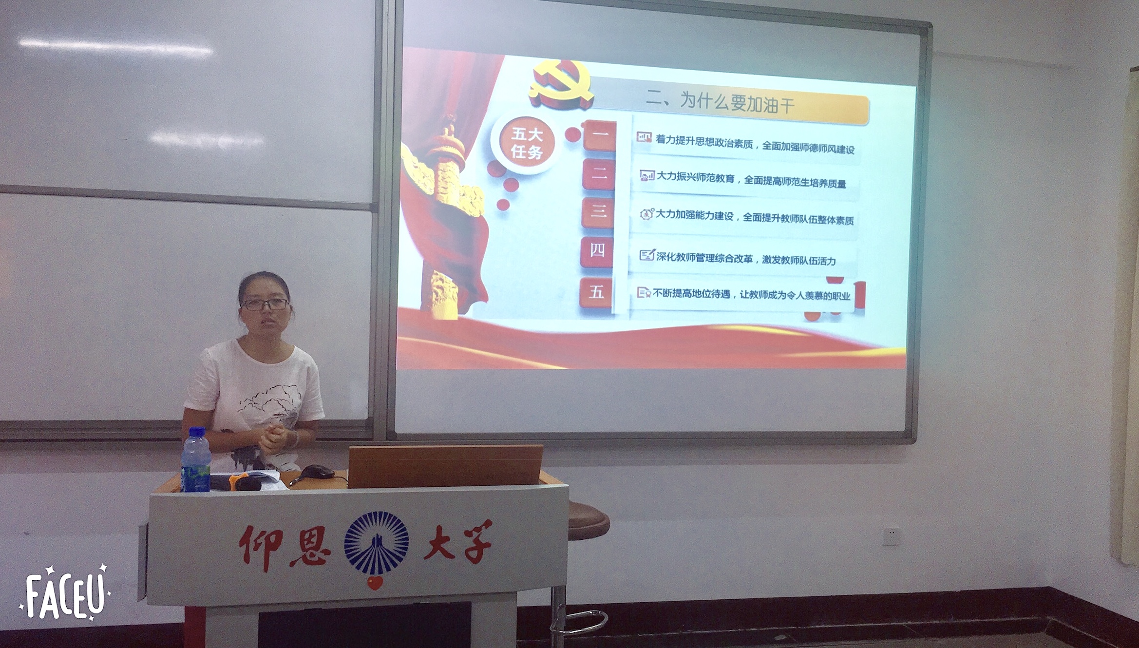 为进一步响应中共beat365唯一官方网站委员会提出“推进了全校深入学习宣传党的十九大精神”,贯彻落实beat365唯一官方网站宣传部的安排部署,9月26日,beat365唯一官方网站于开展了主题为“撸起袖子加油干——党员如何发挥引领作用”的宣讲活动。诚邀会计学院党总支书记高雪琪为本次宣讲。宣讲由学院总支副书记吕思仁主持,beat365唯一官方网站全体师生党员、数学系全体党员参加。