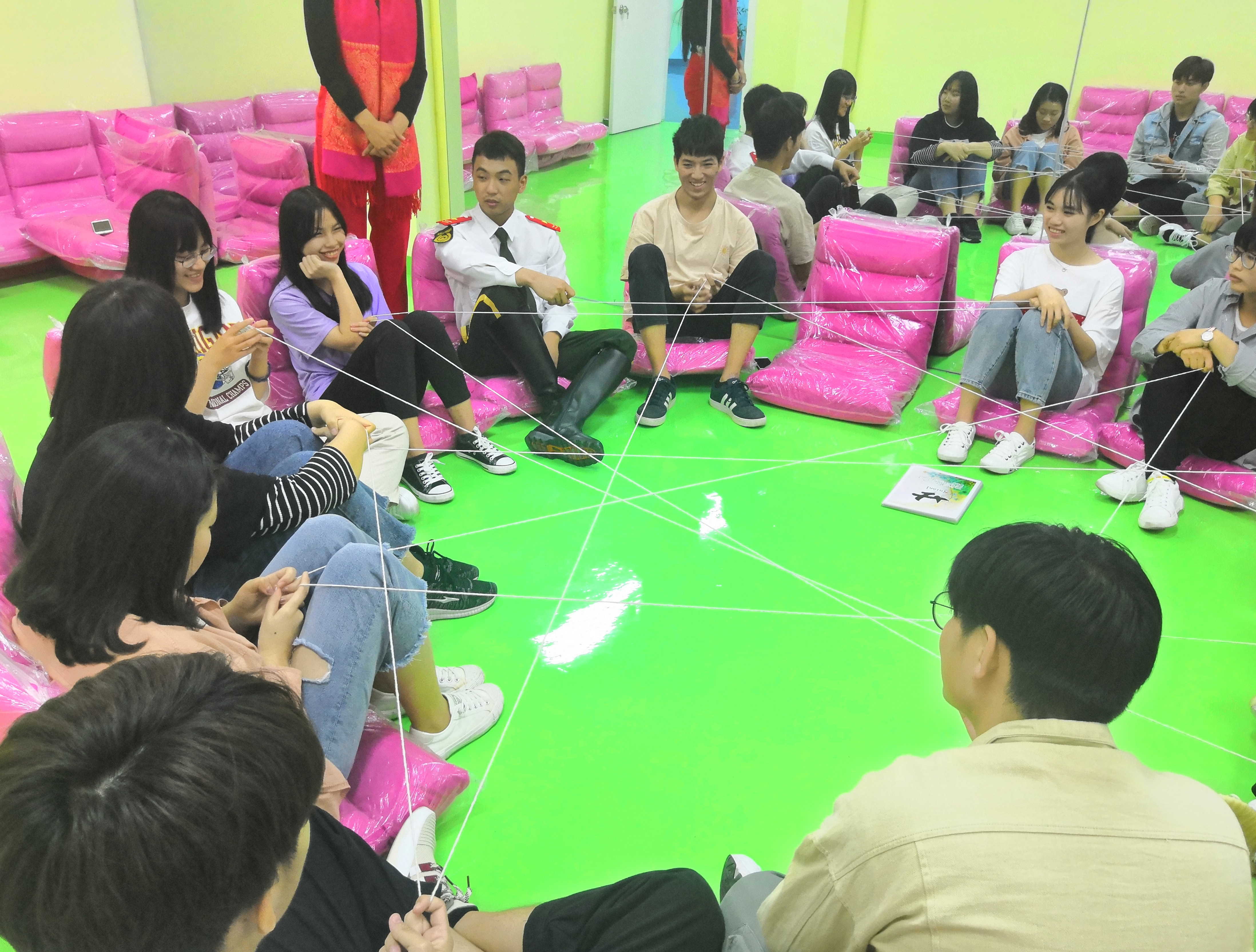 中心主任王艳红老师带领同学们体验了扔毛线球、识图排数字、心有千千结等小游戏,在做中学,让同学们更加深刻体验到人际关系是如何错综复杂,而我们又该如何团结协作。为了让同学们更加的了解心理健康中心的具体功能,老师带领大家一一参观了生物反馈治疗室、情绪发泄室、沙盘游戏室等地方,并带领大家体验各种心理疗法以及仪器。