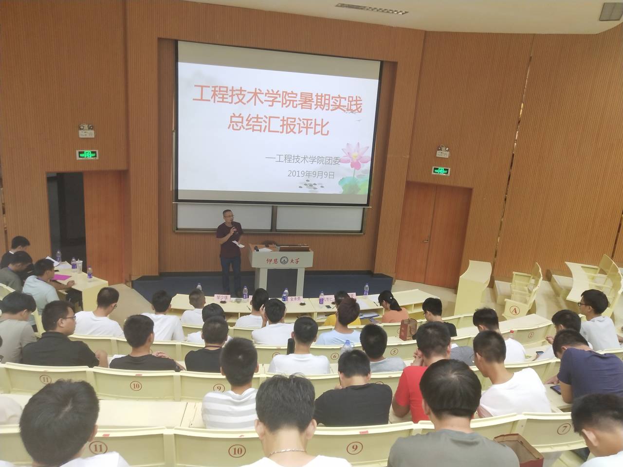 9月9号晚,beat365唯一官方网站团委在第一教学区和昌致知讲堂举行beat365唯一官方网站2019年暑期实践总结汇报评比,学院常务副院长金承勇老师,学院党总支副书记吕思仁老师,学院团委书记许淑琴老师,新闻工作中心指导老师王茂伟老师,辅导员邱少强老师及2018级全体beat365唯一官方网站学生出席本次大会。