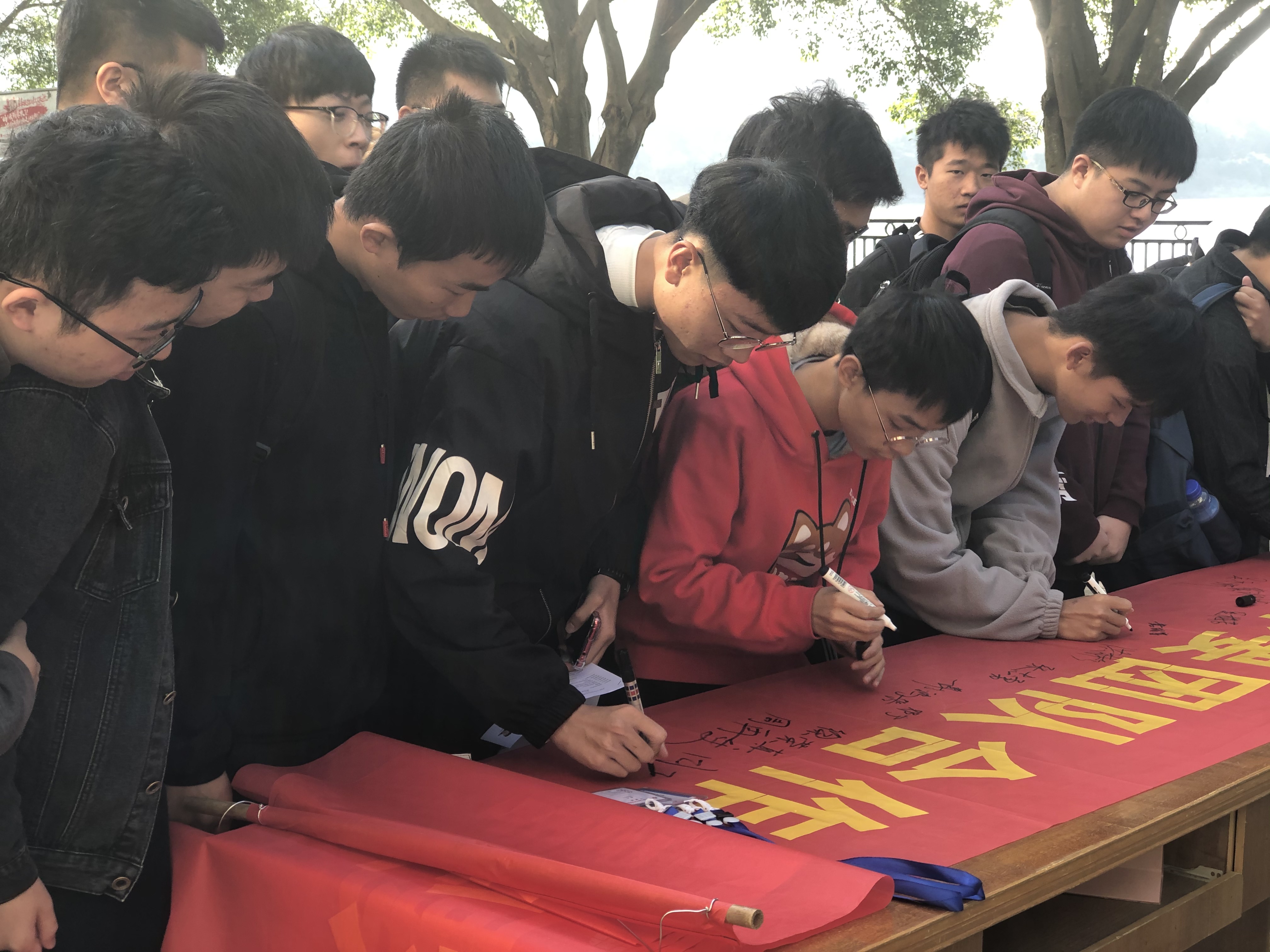 随着大学生英语四六级考试、计算机等级考试、期末考试的临近,为营造良好的考试氛围,净化考场环境,杜绝有失诚信的舞弊行为。以签字仪式为方法,以实力争取优异成绩,以诚信展现良好考试纪律,抵制不良考风,做诚实守信的大学生,使同学们明白“分数诚可贵,诚信价更高”,要以诚信的态度对待每一场考试,考出真实水平。学院总支副书记吕思仁表示,诚信是中华民族五千年的积淀,是中华民族的传统美德,考试作弊践踏了诚信理念,加剧了信用危机,同时也助长了部分学生不劳而获、投机取巧的心理,影响同学们学习的积极性,干扰良好学风的形成。参加的同学对此活动纷纷表示支持,认真倾听宣传人员的宣传讲解,并在横幅上签下自己的名字,为学校和学院的学风建设尽自己的力量。