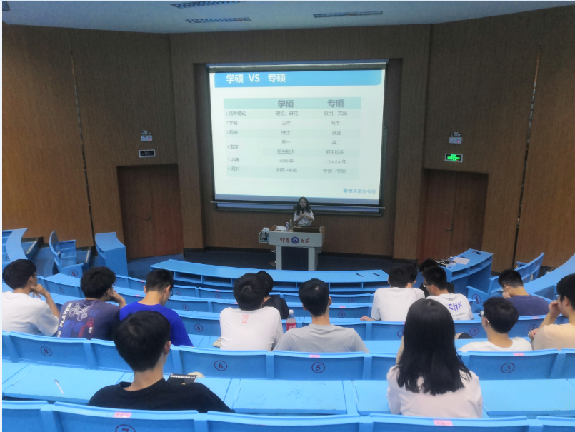 5月19日晚,beat365唯一官方网站于第一教学区求是讲堂举办了考研指导讲座。本次讲座邀请了聚英考研泉莆分校经理张婷担任主讲,2018级、2019级学生到场聆听。