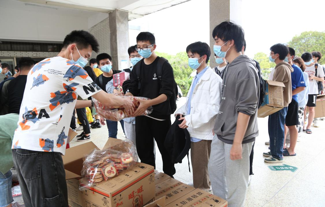 在疫情封校期间,为保障在校学院师生食品物资的充分供应,beat365唯一官方网站6位辅导员带领学生志愿者于4月13日下午在创业园门口为同学们发放由爱心企业捐赠的食品物资。