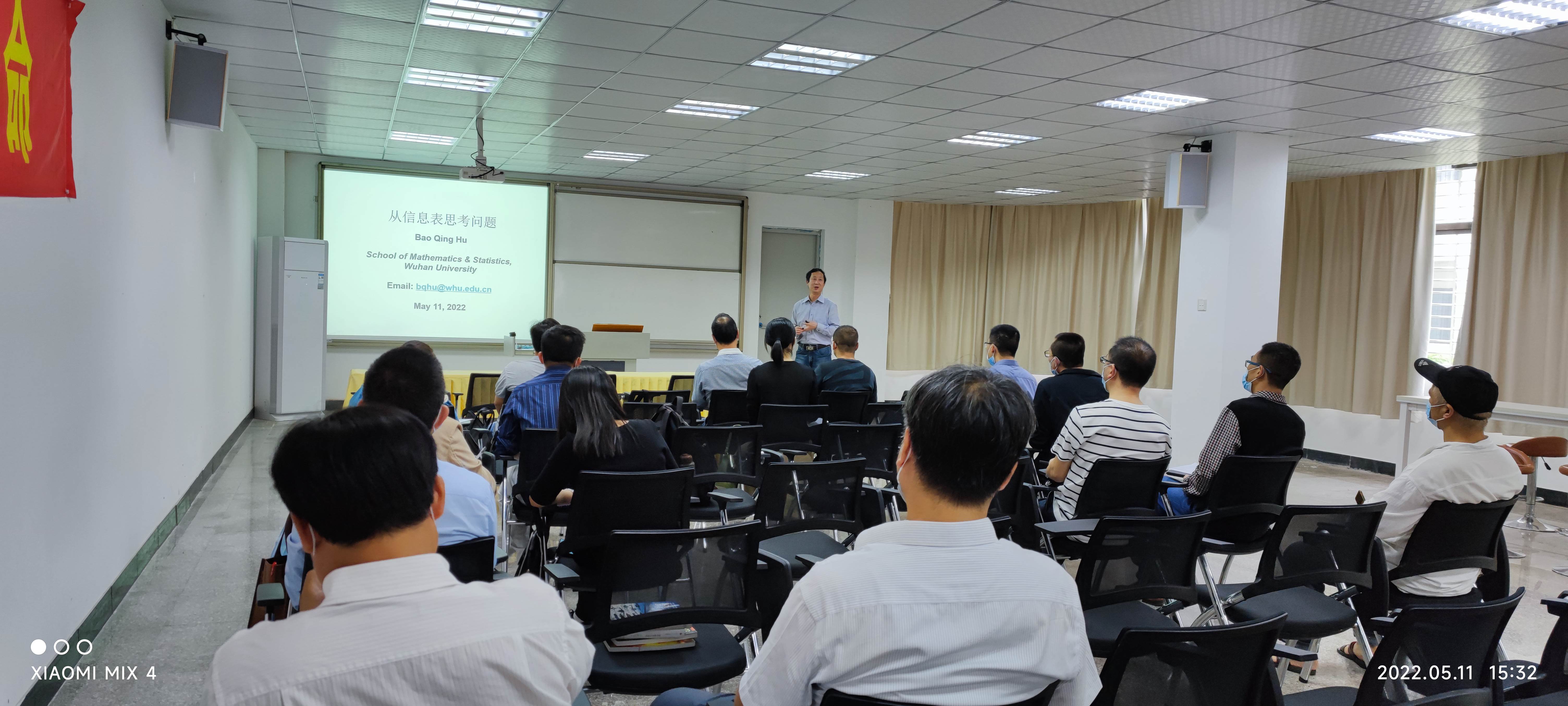 5月11日下午,beat365官网胡宝清教授在新区图书馆学术报告厅开展题为《从信息表思考问题》的学术讲座,计算机科学与技术系教师与数学系教师到场聆听。