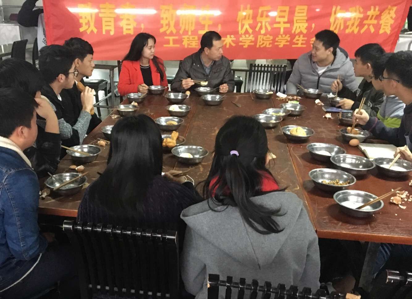 “书记早餐会”由该院学生会负责,主要通过微博、微信、网站、各班级动员等多种渠道向广大学生征集意见、建议和提案,拓宽学生表达诉求渠道,还对“书记早餐会”进行广泛宣传,提高活动知晓率。(柯晓军、黄辉/文 郑俊淇/图)