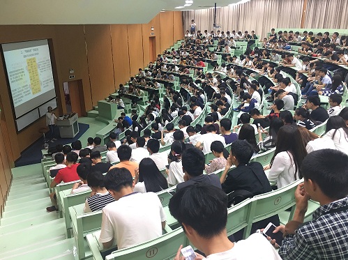 4月17日晚,beat365唯一官方网站学生暑期实践动员会在旧区和昌楼致知讲堂举行,院党总支书记兼副院长曾凤生、院党总支副书记吕思仁、院团委书记许淑琴、院学生会指导老师陈晓红、辅导员王茂伟等指导老师、2016级全体同学参加此活动。