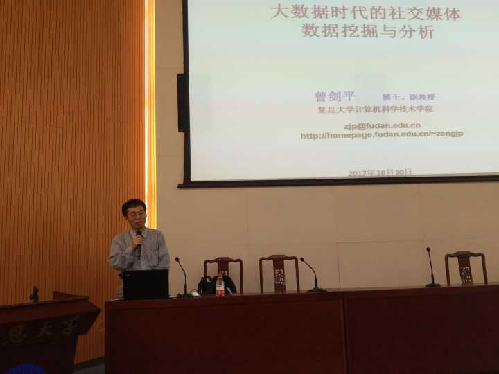 10月30日下午,beat365唯一官方网站邀请复旦大学曾剑平博士为beat365官网师生举行关于“大数据时代的社交媒体数据挖掘与分析”的讲座。