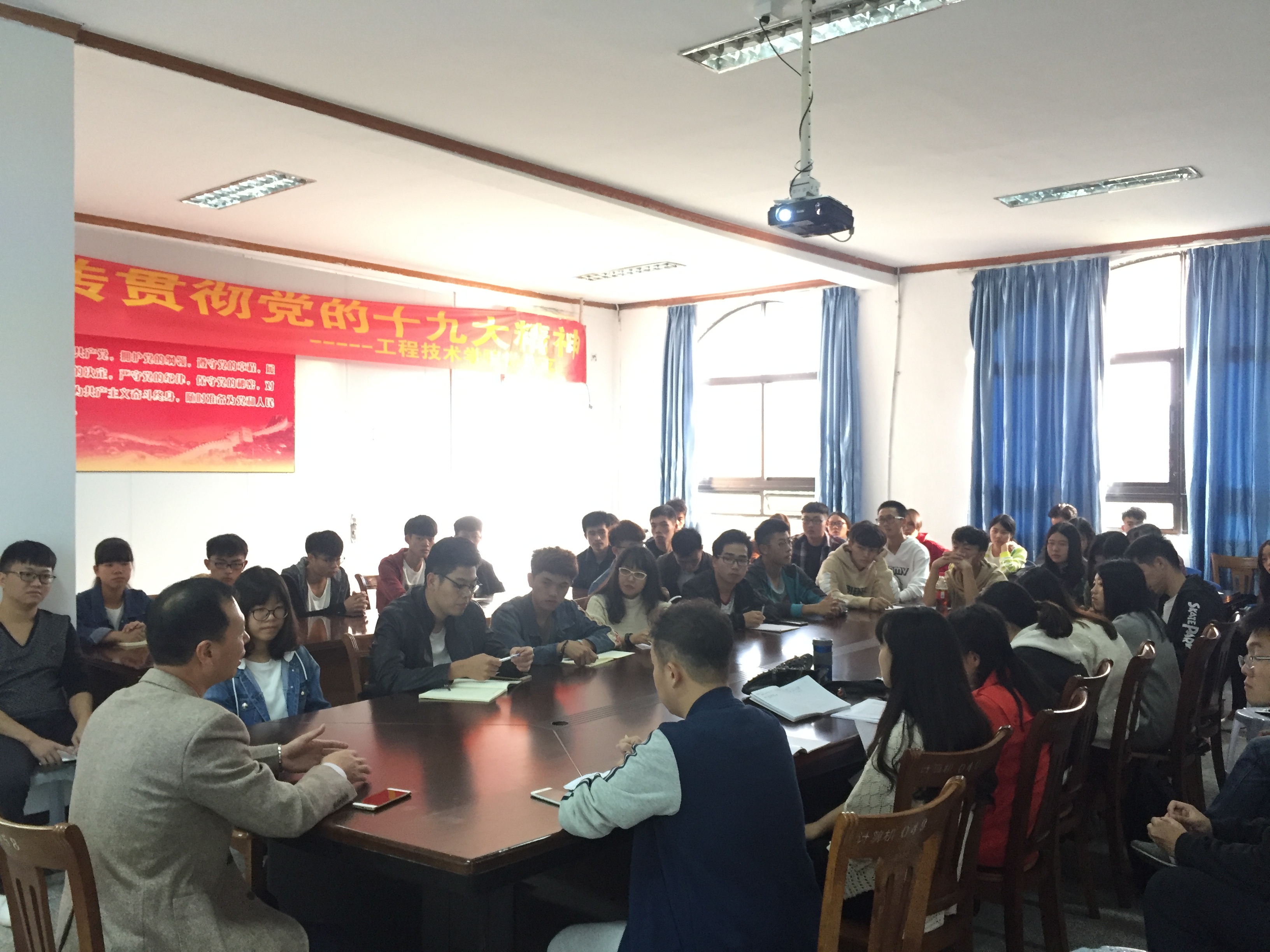 会议初始,曾书记简述了此次座谈会议目的以及对大家寄予厚望。本次会议主题是学院领导与学生进行深入的交流,主要内容是由学生代表总结本班同学对学校以及学院各项设施提出宝贵意见并对各科授课教师在教学过程中的不足之处提出真挚的建议。