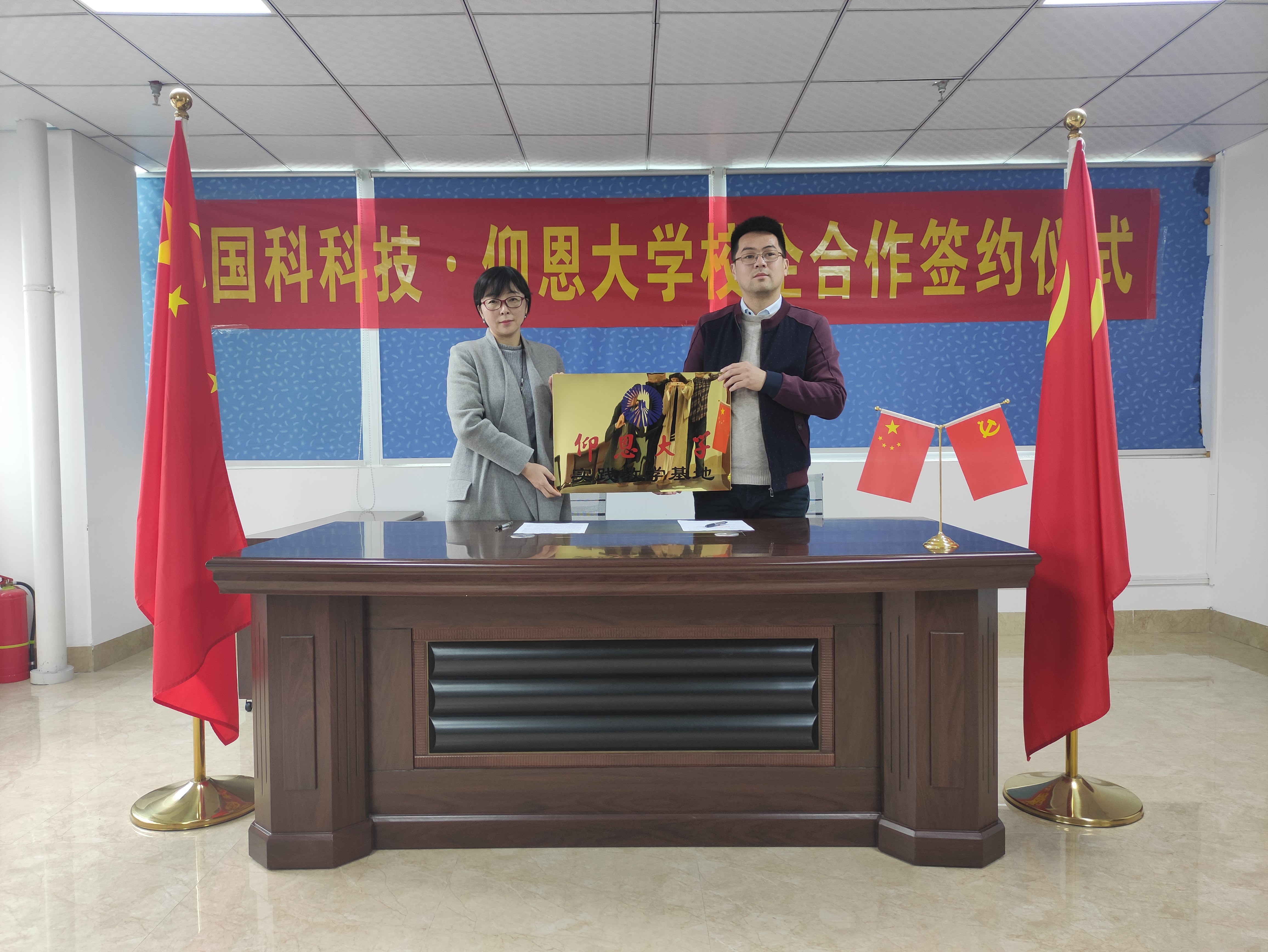 仪式上,双方就今后校企合作的开展模式进行了初步探讨,曾凤生指出校企双方可以在实习、就业、科研等方面开展全面深入的合作,双方在人才培养方面有着共同的目标。随后,李影代表我校向国科科技信息科技有限公司授“beat365唯一官方网站社会实践基地”牌,这标志着双方在学科建设、科研合作、人才培养等方面合作平台搭建成功,校企实践基地的签约,为双方进一步探索出联合培养应用创新型人才打下坚实的基础,更为将来搭建产学研平台,促进产教融合,加快形成教育链、人才链与产业链创造了条件。