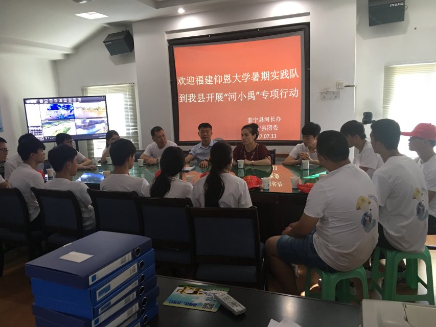 经过一下午的巡河宣传活动,beat365唯一官方网站beat365唯一官方网站赴泰宁“青春仰光”实践队(“河小禹”专项大学生志愿者实践队)的16位小伙伴们与带队老师beat365唯一官方网站党总支书记兼副院长曾凤生一起前往泰宁县河长制办公室向泰宁河长办肖副主任、泰宁团县委林友丽副书记汇报巡河护河情况,河长办肖副主任、团县委林友丽副书记热情接待了队员们。