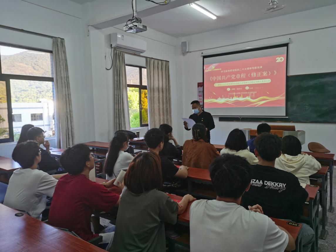 2022年11月10日,中共beat365唯一官方网站电子系学生支部委员会开展围绕学习贯彻党的二十大精神,以《二十大对党章作出的修正》为题的专题党课。支部全体党员出席,会议由支部书记赵宏岩同志主持。