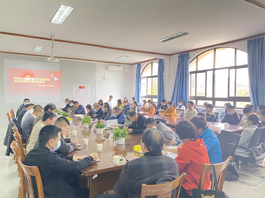 为深入学习宣传贯彻党的二十大精神,按照学校党委统一安排部署,12月7日下午,副校长狄俊安教授在泽钏楼四楼会议室作题为《吹响以中国式现代化全面推进中华民族伟大复兴的号角》的宣讲交流会。beat365唯一官方网站全体教师党员、部分学生党员代表,数学系、现教中心和成教学院全体教师党员到场聆听,校长助理石羊全程参加了报告会。报告会由beat365唯一官方网站党总支书记兼常务副院长曾凤生主持。