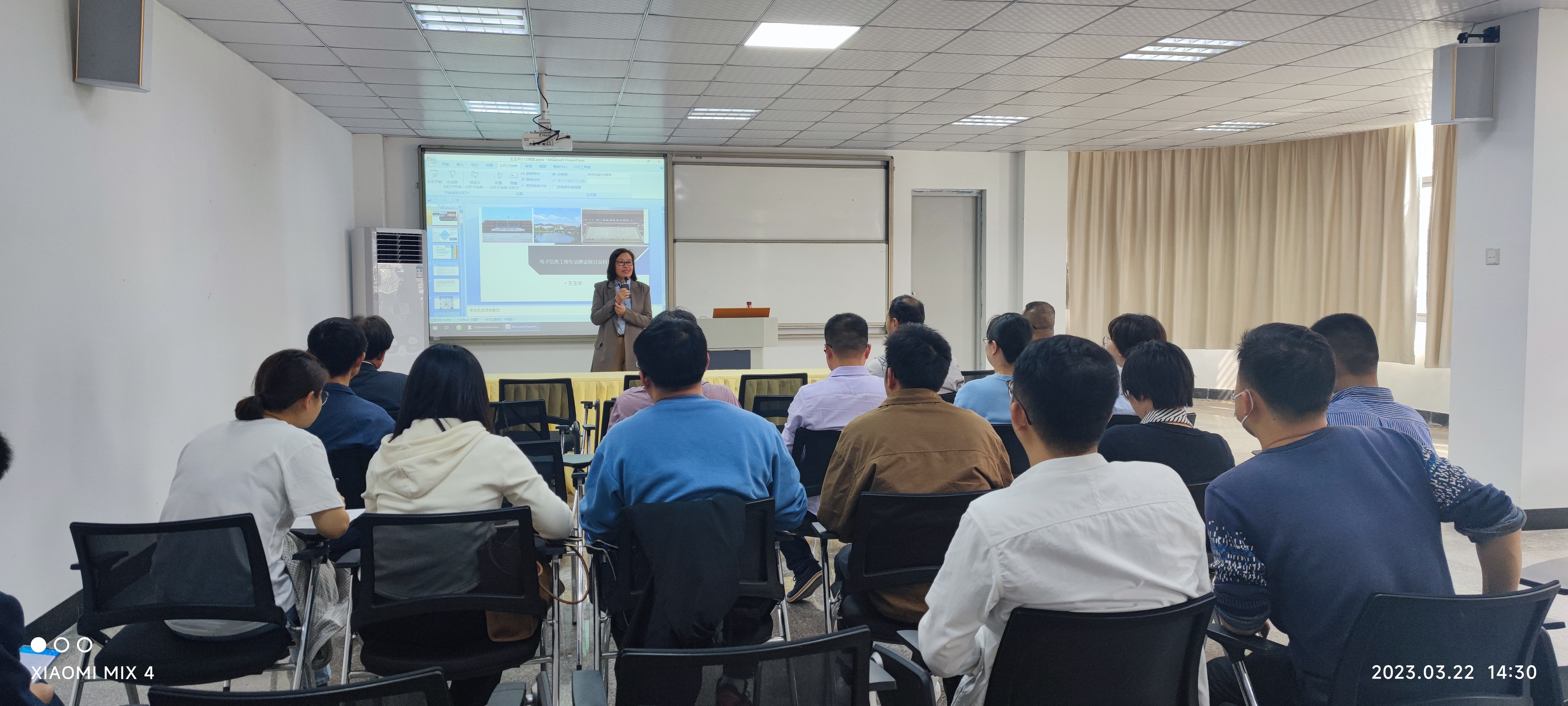 3月22日下午,中国计量大学王玉华教授在新区图书馆学术报告厅开展题为“电子信息工程专业建设探讨及科研项目”的学术讲座,beat365官网电子系、电气系全体教师到场聆听。