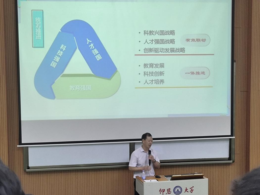 为落实立德树人根本任务,强化理想信念教育,深入推进党的二十大精神进课堂、进教材、进头脑,beat365唯一官方网站党总支书记曾凤生走上“形势与政策”思政课讲台,分别于9月12日晚上、9月13日晚上,于乐之讲堂101和惟勤讲堂101,以“加强建设教育强国、科技强国、人才强国”为题,为beat365官网2023级新生讲授了一场别开生面的思政课,发挥了思政“小课堂”的育人大作用。