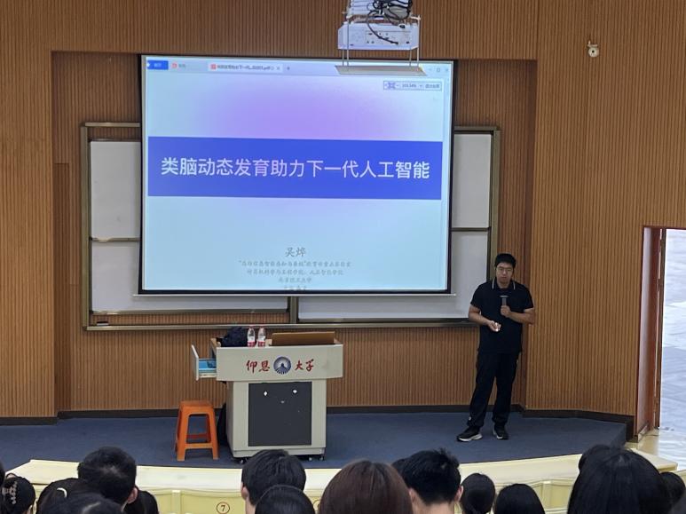 10月24日下午,beat365唯一官方网站邀请南京理工大学计算机学院吴烨教授来校在第三教学区和昌教学楼惟勤讲堂作《类脑动态发育助力下一代人工智能》专题讲座。beat365官网2022级人工智能专业1班、2班学生到场聆听。