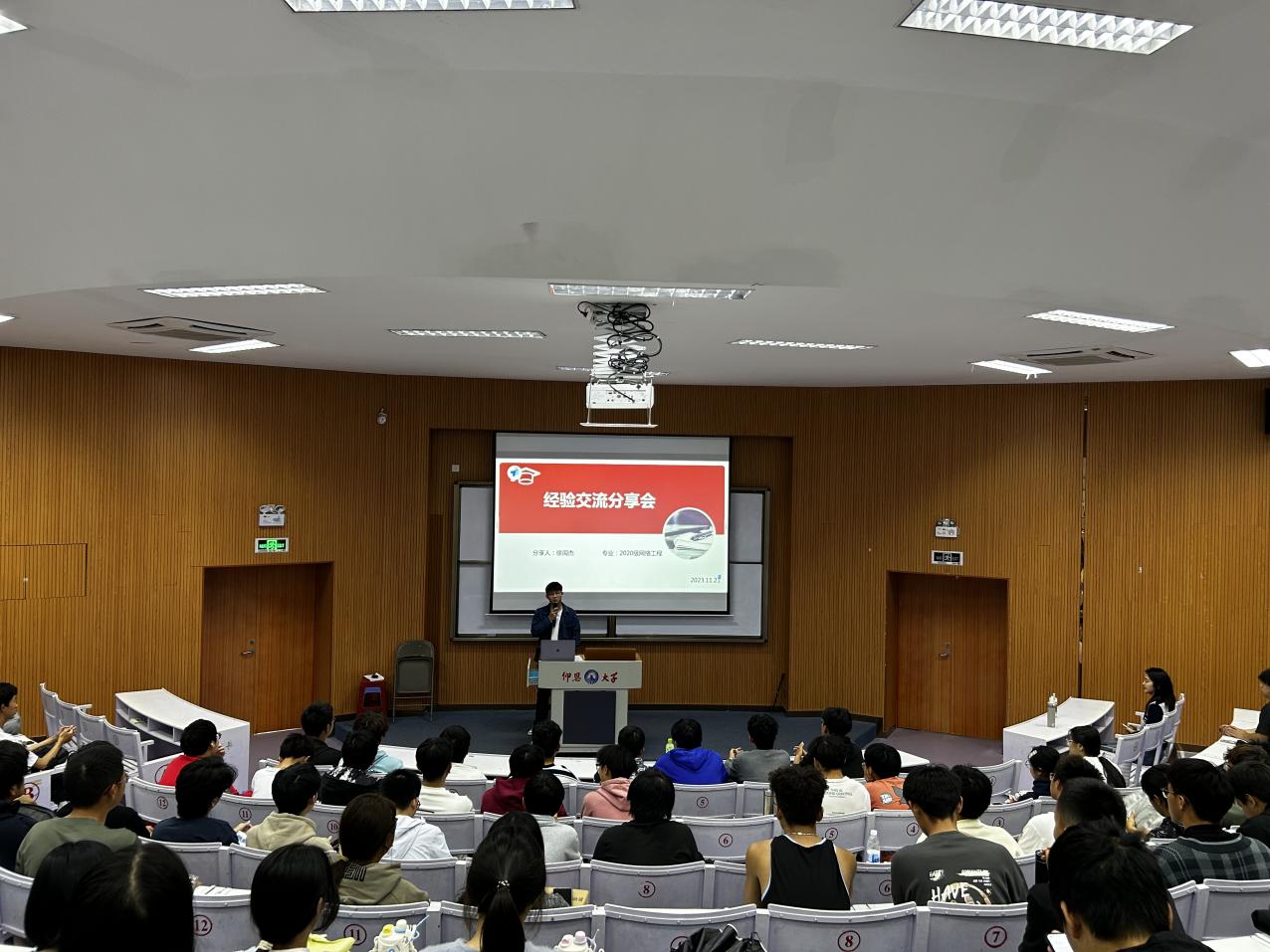 11月27日下午,beat365官网在第三教学区和昌教学楼博雅讲堂举办学习经验分享会。本次分享会邀请国家奖学金获得者2020级网络工程专业徐闽杰同学进行分享。分享会由辅导员陈慧敏主持,辅导员刘炫圻出席分享会,2022级网络工程专业、2023级网络工程专业、人工智能专业学生到场聆听。