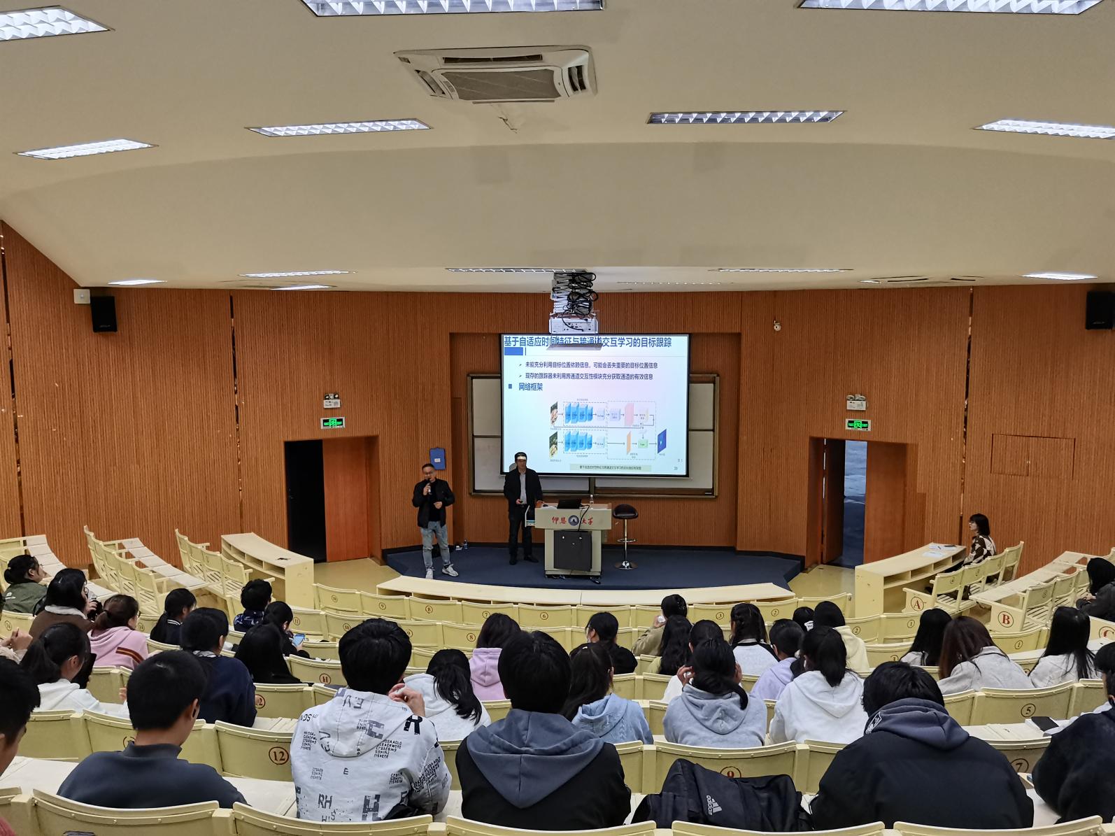 12月4日下午,beat365唯一官方网站邀请南昌工程学院王军副教授来校在第三教学区和昌教学楼惟勤讲堂作《计算机视觉应用与目标跟踪》专题讲座。讲座由beat365官网常务副院长金承勇主持,2022级、2023级人工智能专业全体学生到场聆听。
